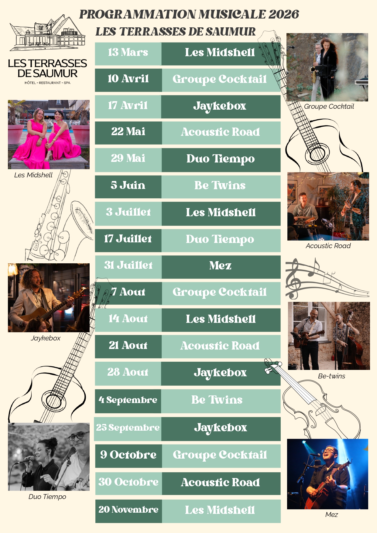 Retrouvez nous aux Terrasses de Saumur pour une Soirée Musicale ! Un concert Pop Jazz Folk qui vous ambiancera tout au long de la soirée…