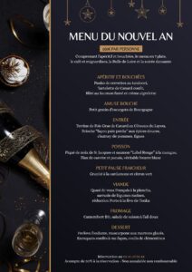 Fêtez la Nouvelle Année à nos cotés : diner Réveillon de la Saint-Sylvestrepar Lila Goatydans Evénementssur Publié le 1 janvier 202515 novembre 2025 Réservez dès à présent votre table pour notre soirée de la Saint Sylvestre !Une soirée sous le signe de la gastronomie, la musique, et la fête !STAY TUNED : La programmation musicale sera publiée dans quelques jours !